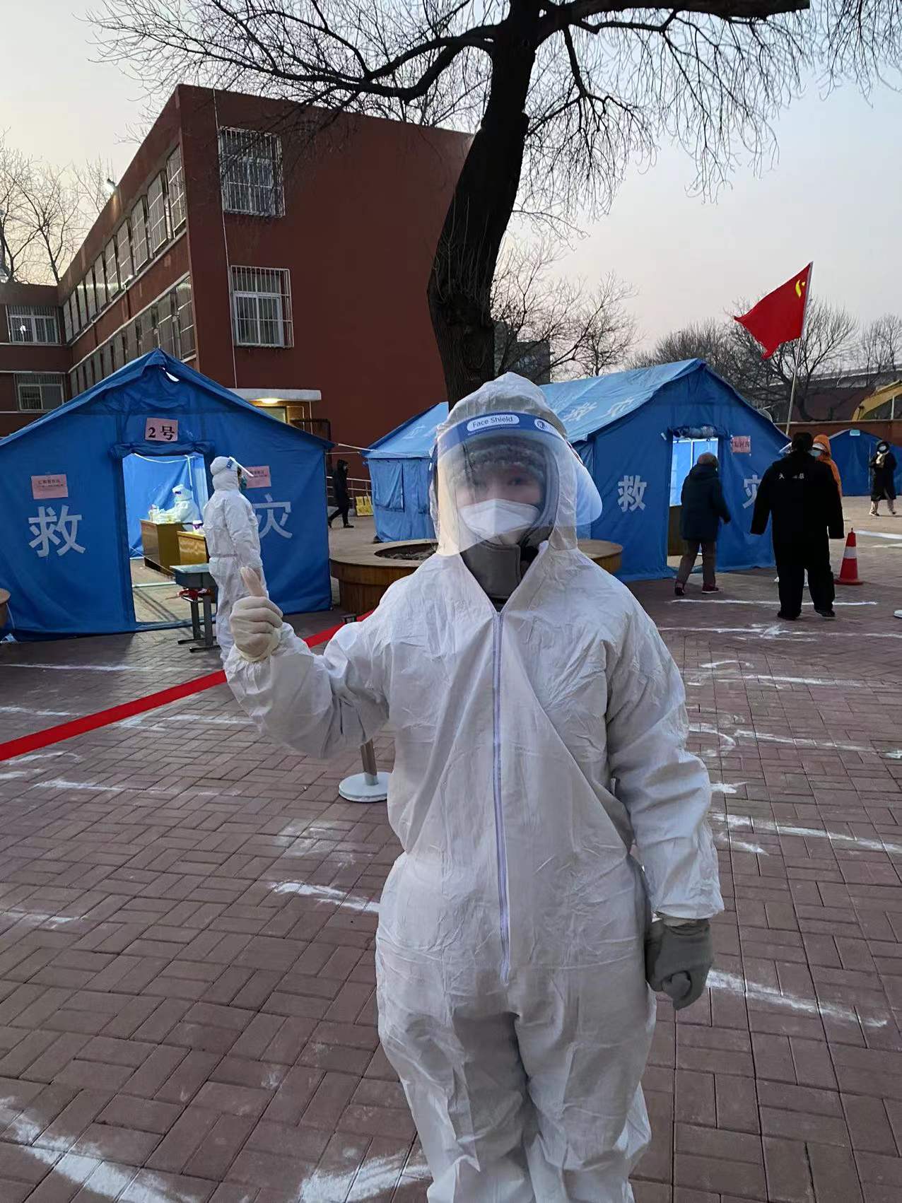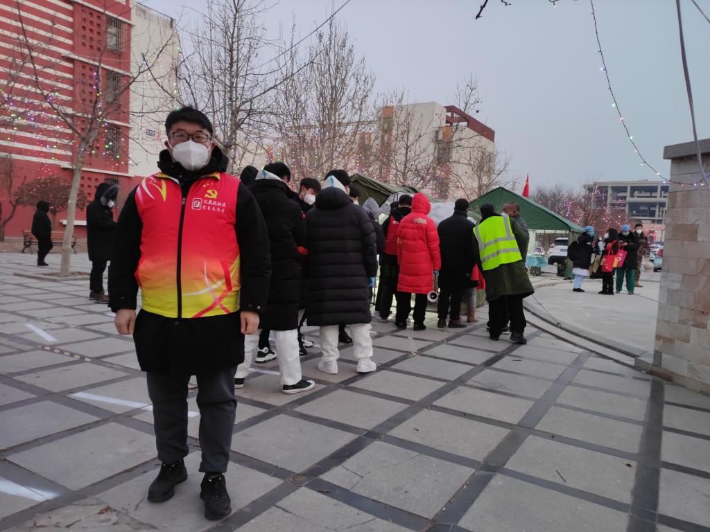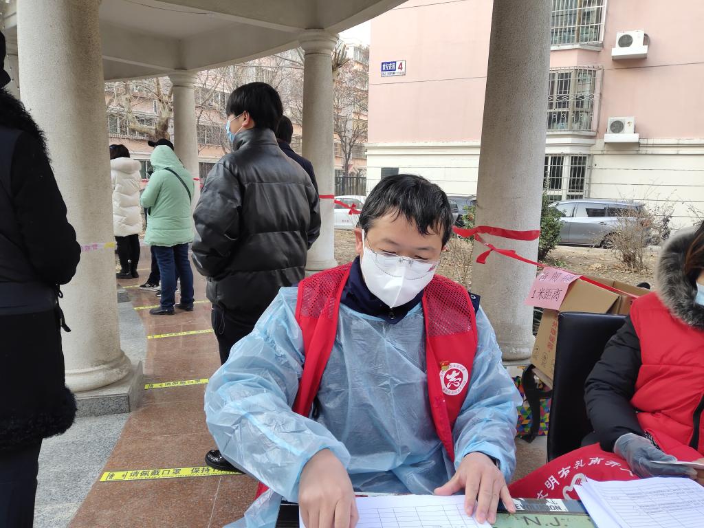 教辅人员、行政干部党支部范可媛是本次下沉社区志愿者中最年轻的一位,本次疫情发生之后,配合学校与所在社区要求,在所在小区进行志愿服务。三筛的当天不到4点就起床,5点钟到社区进行报到,领取分配任务,进行前期准备工作。在检测开始之后,对自己所负责的检测队伍进行信息的登记并进行秩序的维持,在临时搭建的户外检测点,没有建筑遮蔽,寒风一吹就是透心凉,为了加快检测速度,基本没有时间休息。她表示,年轻人,就是要多服务多担当,并相信在所有群众团结一心紧密配合之下此次天津一定可以顺利渡过难关。