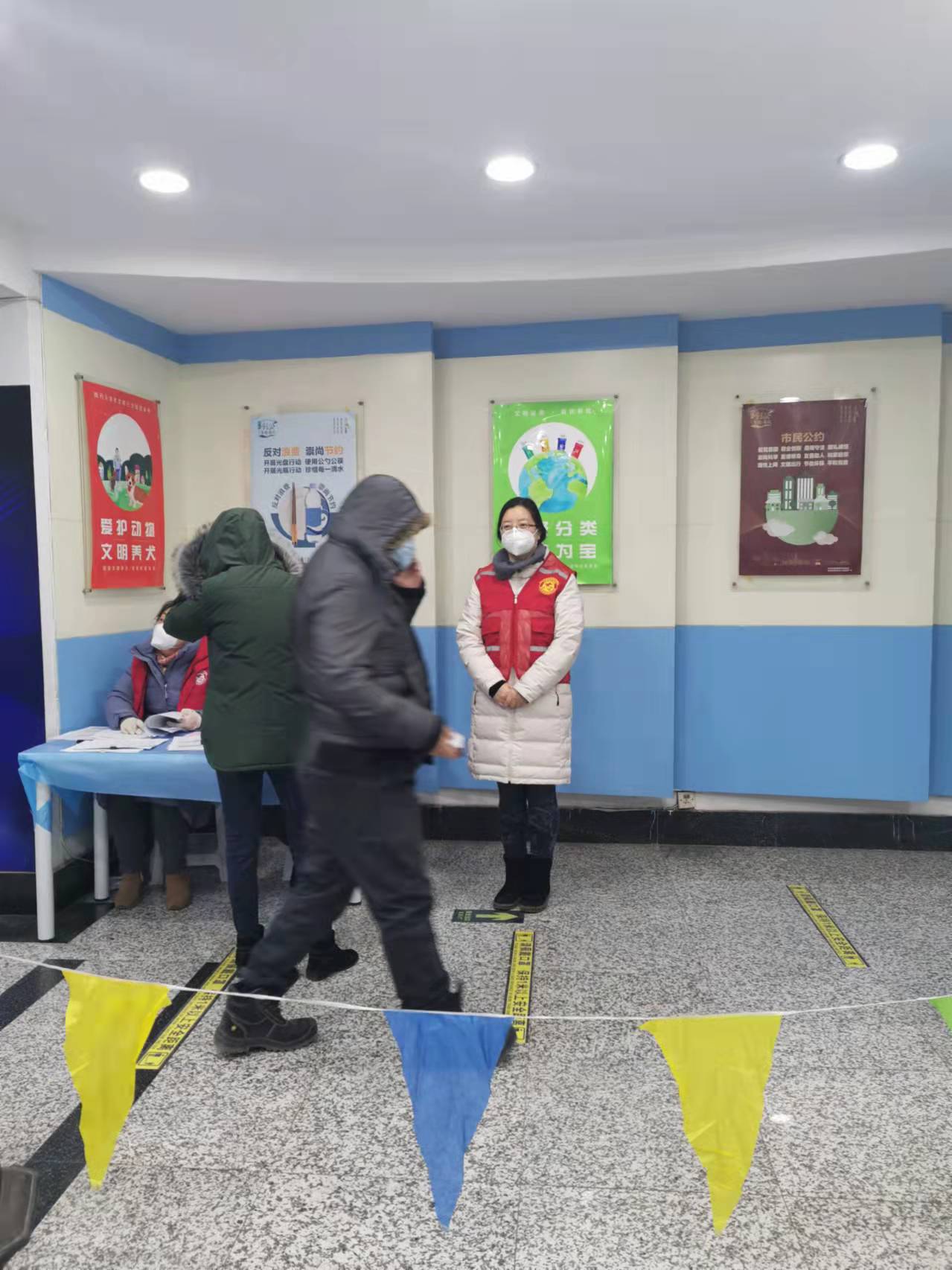 期刊编辑部编辑、行政干部党支部孙晓明老师与专业教师、中国史教师党支部曹牧老师,分别在第一时间到红桥区西沽街道运河西社区、和平区南市街庆有西里社区报到参加第三次大筛的志愿服务。厚厚的防护服一穿就是一天,在寒冷的天气里也只能带着医用橡胶手套,不用多久手就被冻得通红。不过两位老师均表示,虽然情况艰难,但是自己是一名共产党员,这种时刻就应该勇担责任,为社区防控助力。