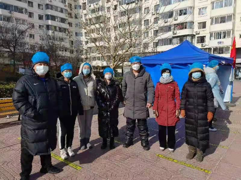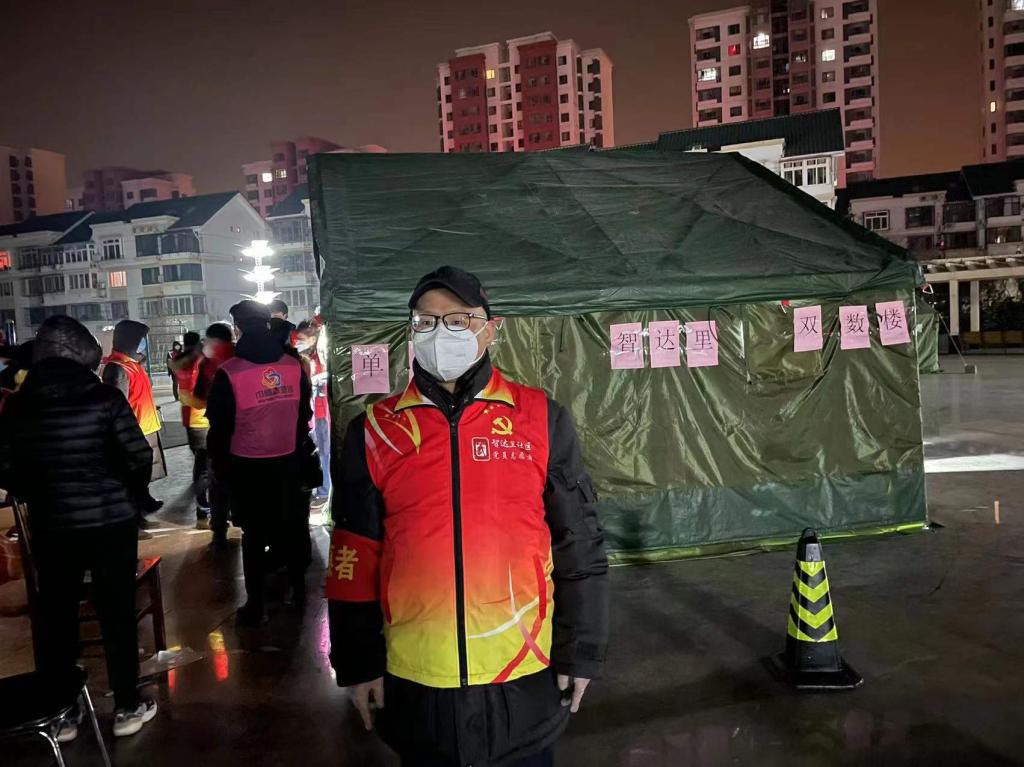 专业教师,文博与旅游管理专业教师支部教师石洪波,已经连续几天到西青区智达里社区报到了,在大型核酸检测的时候搬运防疫物资,布置检测点位,维持检测队伍秩序,保证核酸检测有序快速进行;平日里在社区门前对出入人员进行验码测温,在户外一站就是几个小时。石老师表示,作为党员,此时正是国家和人民需要我的时候,必定要奋战在一线,为人民服务。