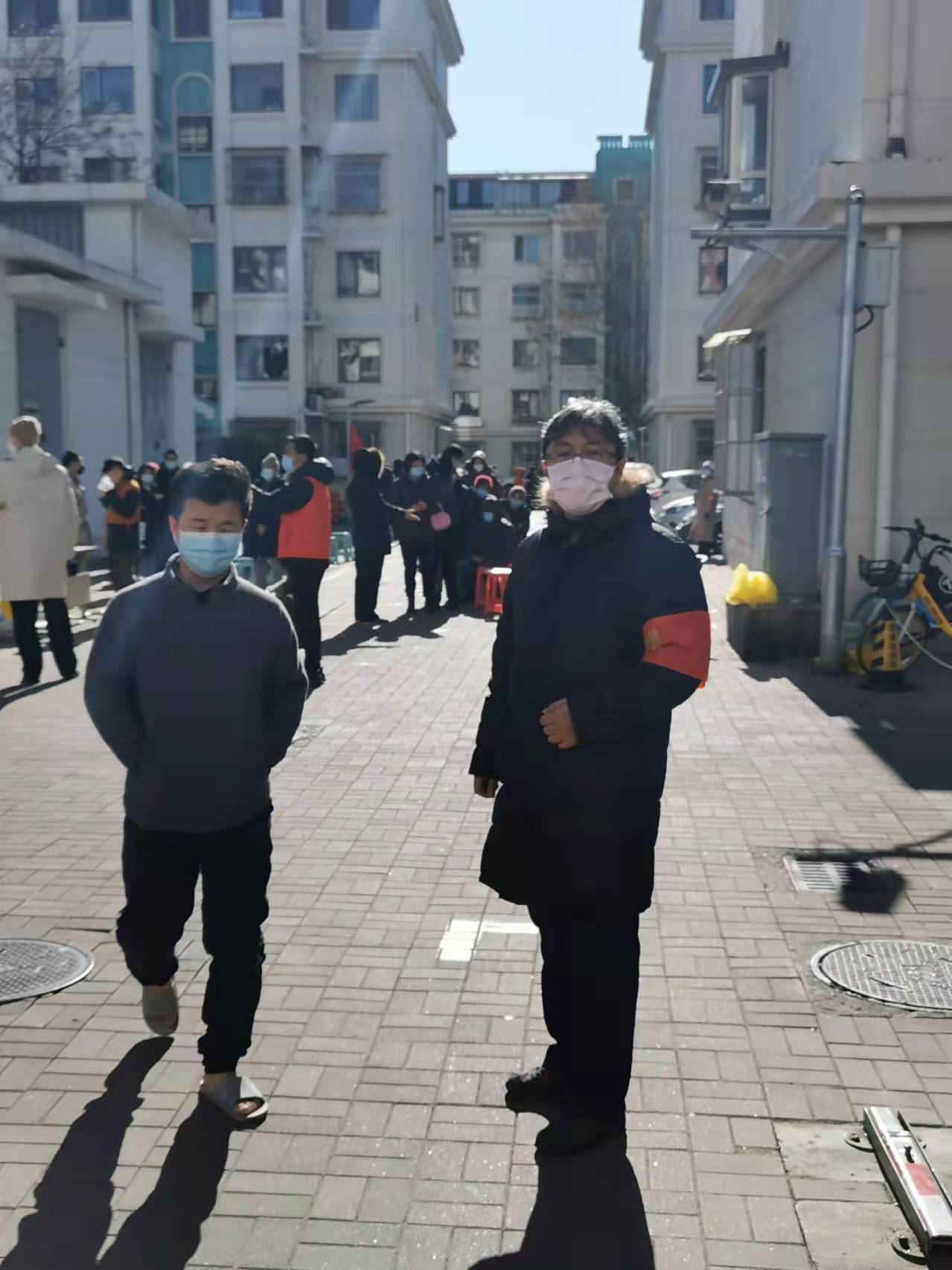 专业教师,世界史教师支部教师刘英奇和冯金朋分别到南开区艳阳路金厦里社区与和平区泰安道社区报到,协助第三次大筛。刘英奇老师主要负责核酸检测样本的转运工作,工作的特殊性让刘英才老师感到紧张,但是刘老师表示,既然交付任务于我,必定不辜负组织信任。冯金朋老师天不亮就到社区开始筛查之前的准备工作,布置点位,搬运物资,协助维持秩序,一直工作到天黑。两位老师均表示,能够参加到此次志愿服务当中,是组织交付的任务,同时也代表了组织的信任,一定会认真完成,并期待且相信此次难关一定会顺利度过。