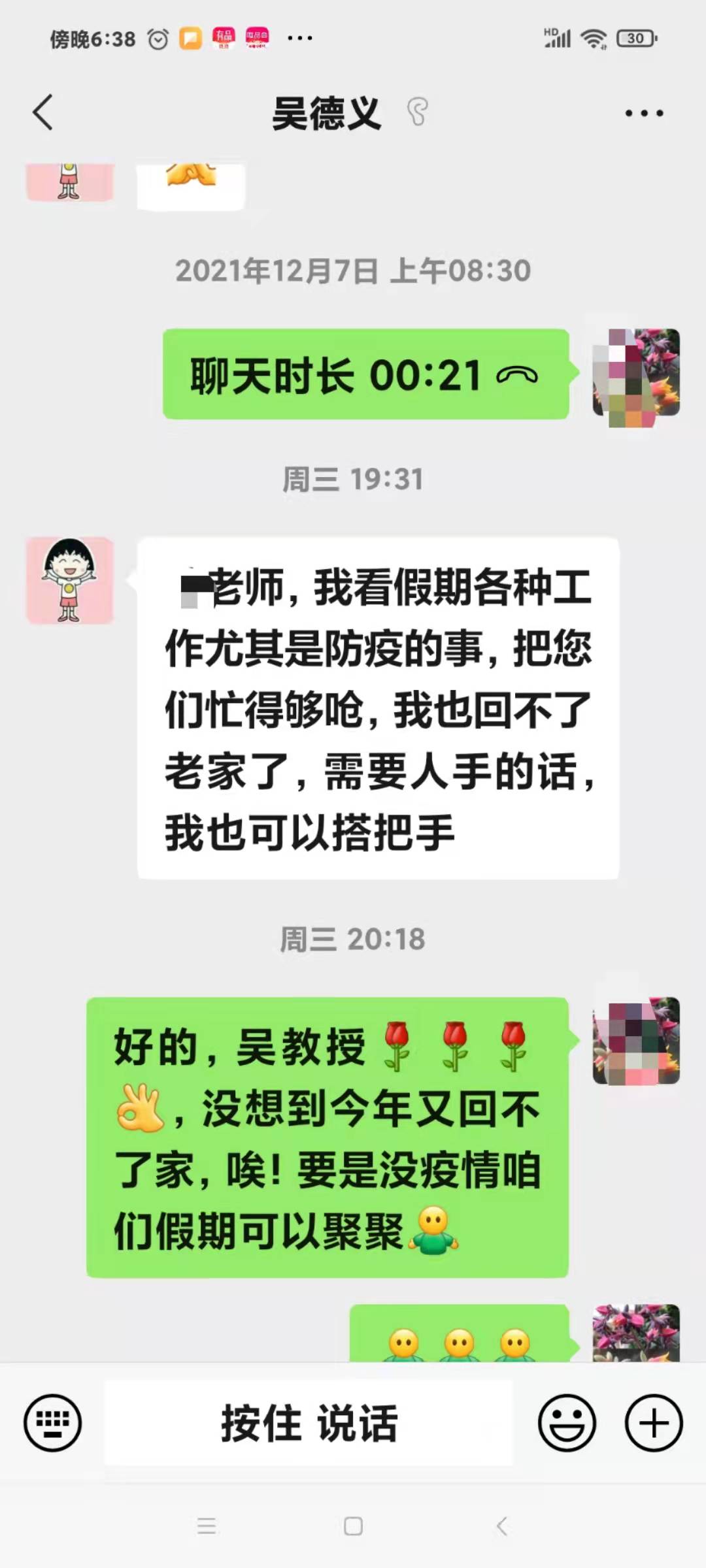 中国史专业教师吴德义由于年龄原因,此次并没有参加下沉社区的志愿服务,但是仍然心系疫情防控情况,并表示,如果缺少人手,自己随时可以顶上,为群众服务。专业教师,中国史教师党支部教师于双远在三筛时南开区长虹街道雅园里社区报到,主要排查社区未进行二筛的居民并进行登记,一天的电话打下来嗓子都哑了,但是于老师表示,能够为社区做一点力所能及的贡献是身为共产党员义不容辞的责任。