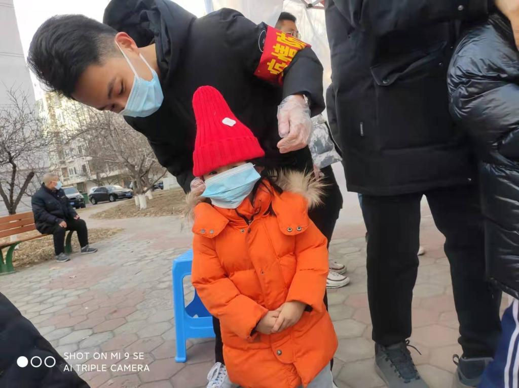 2005贠佳瑞,在天津市河北区光复道街道庆安街社区居民委员会担任疫情防控志愿者,协助天津市全员核酸检测。