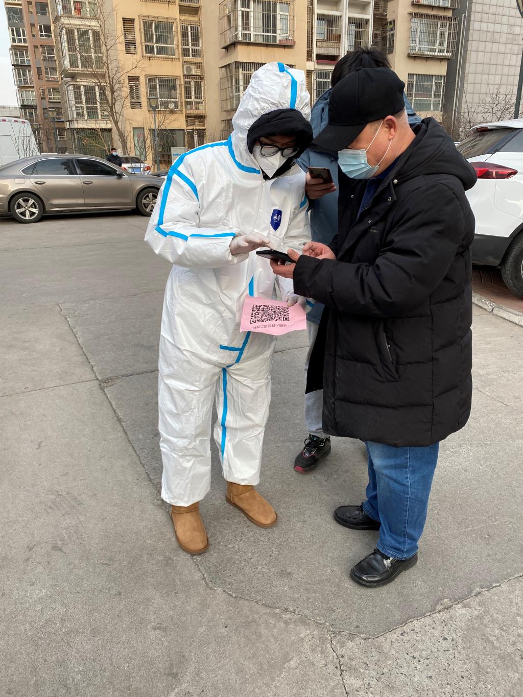2003何潇逸,在天津市武清区荔城首府玉锦园帮助社区进行疫情核酸信息登记,人员信息检查等工作。