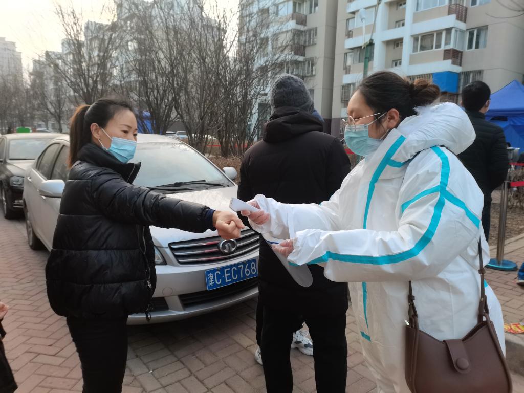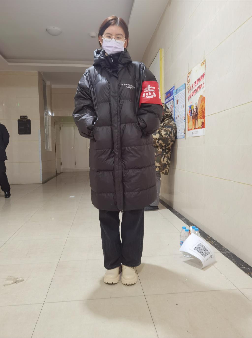 2004班的李博雅同学作为员工会骨干成员和班长,在第一次核酸排查时,就主动拨打居委会的电话报名了志愿者,协助医护人员测温、登记。而后进行二次核酸筛查时,再次报名。谈到这次志愿服务,她感慨良多:“作为一名老员工,更作为一个天津人,我更有责任去守护这个养我育我的城市。在志愿服务中不仅有劳累和酸痛,更有收获与感动:业主的一句句“辛苦了”、小朋友的一句“姐姐真棒”和大妈冒着冷风送来的姜茶和鸡蛋......都让我备受鼓舞。抗疫必胜,天津必胜!”