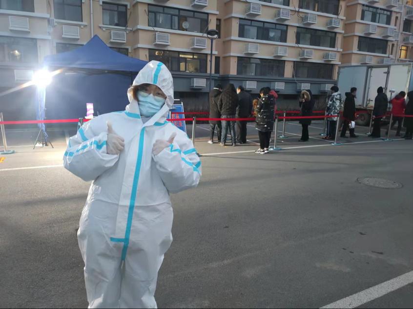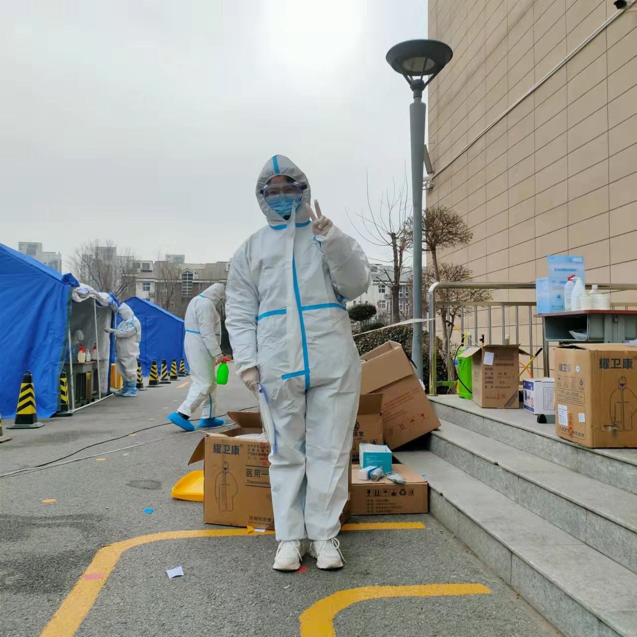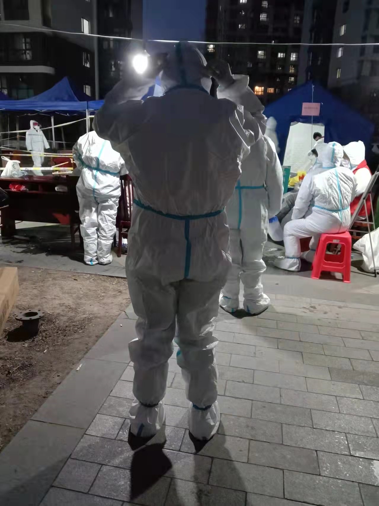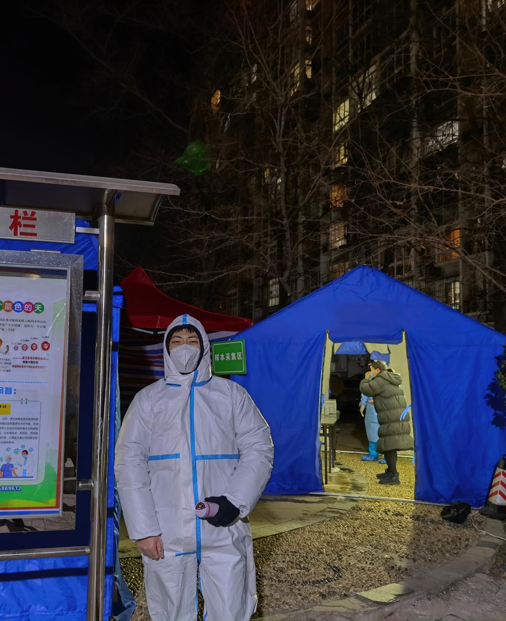 2004邳秋实,在天津市岳园社区担任核酸检测志愿者。