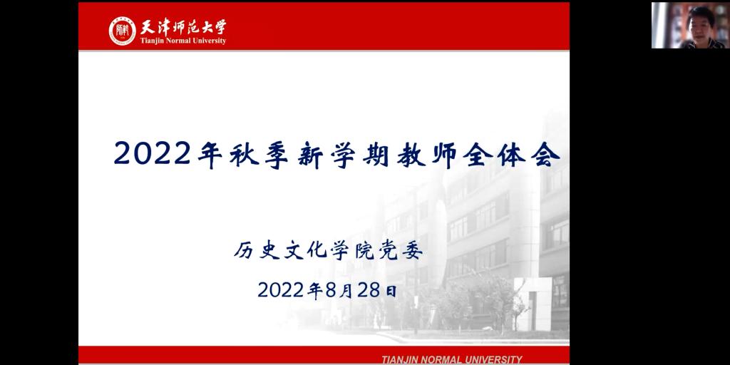 为扎实有效地开展新学期工作,确保各项工作全面有序进行,公司党委于2022年8月28日上午十点三十分采取线上形式召开新学期全体教职工大会。600全讯cc白菜、欧洲文明研究院全体教职工参加会议,党委书记刘殿芬主持会议。