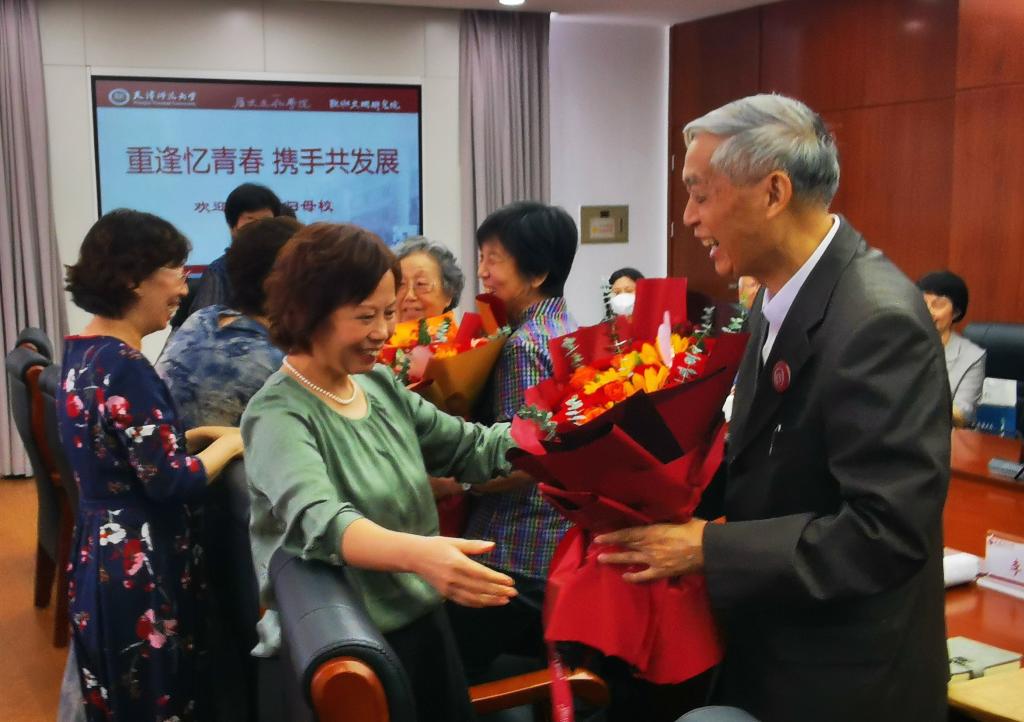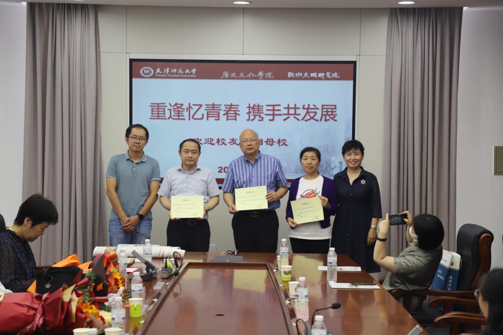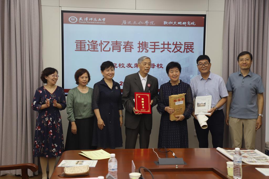 员工代表向老教师们献花,表达敬意和感恩之情。徐云莲老师深情回忆了与员工们学习生活的美好时光,特别是共同去西安、延安实习的岁月,也祝愿所有员工事业有成、家庭美满、在自己的岗位上努力奋斗,为母校争光。92届员工黄敬岩、93届员工王勇、李琴,分别代表班级表达了对母校和老师们的感恩之情。李海涛教授代表全班师生将珍藏了30年的93届本科班西安实习的作业、壁报等资料连同93届员工为30年返校特意制作的《毕业三十年纪念册》捐赠给学院,表达了93届师生的拳拳爱校之情和浓浓爱教之意,希望学院的青年老师、同学们继续发扬“勤奋严谨,自树树人”的师大校训,让与时俱进的师大精神永远传承。公司党委书记刘殿芬、经理张乃和接受捐赠资料并向李海涛老师和全班同学颁发捐赠证书;公司党委副书记徐显达向两届员工颁发员工林捐赠证书。座谈会后,所有员工和领导老师一起合影留念。