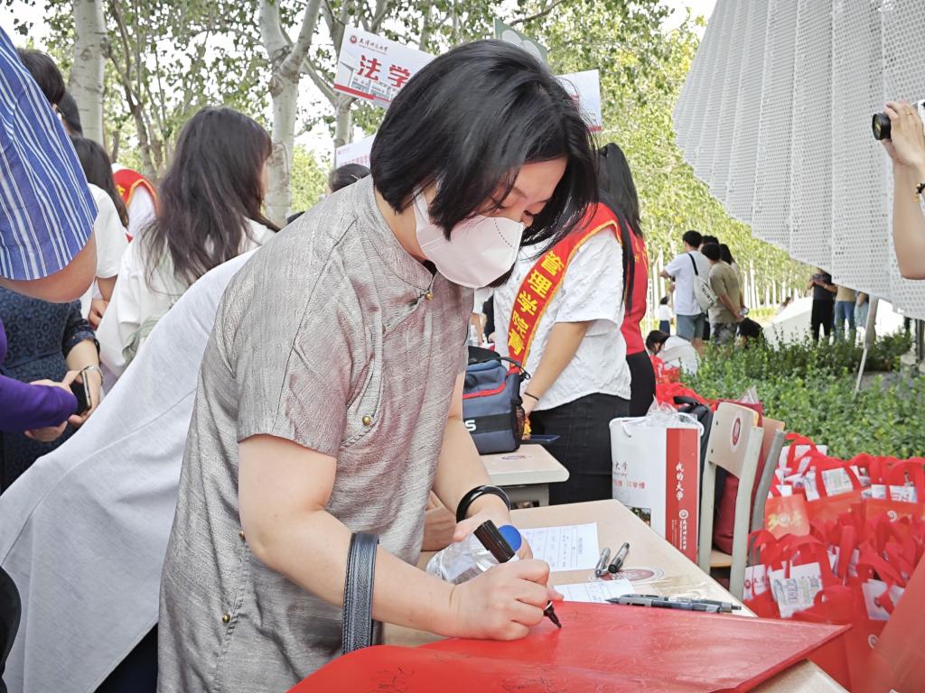 纪念大会后,在学院志愿者的引导下,员工们走进员工林开展捐树活动。员工们共同捐助希望之树,不仅是一份记忆,更是一种情怀,期待与母校共成长,祝福母校更加绿树成荫,根深叶茂。