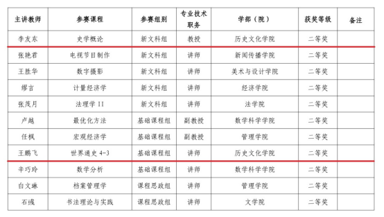 近日,公司公布第三届教师教学创新大赛结果,经过激烈角逐,600全讯cc白菜推荐参赛的四位教师再创佳绩。其中陈晨副教授荣获新文科组副教授赛道一等奖,郝园林老师荣获新文科组讲师赛道一等奖,两位老师被推荐代表学校参加天津市第三届高校教师教学创新大赛。李友东教授荣获新文科组教授赛道二等奖,王鹏飞老师荣获基础课程组讲师赛道二等奖。