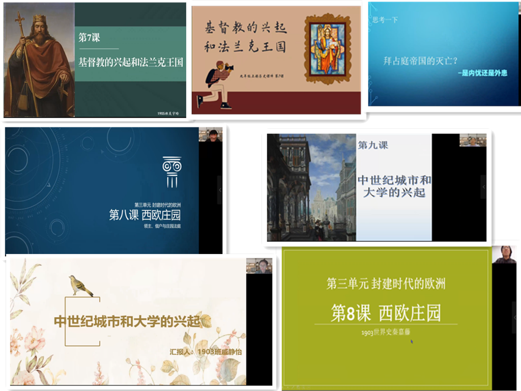 七位同学围绕中学世界史九年级第三单元“基督教的兴起和法兰克王国”、“西欧庄园”等课程进行包括说课、导入新课、讲授新课、课堂小结、巩固练习诸环节全程试讲训练。在实践中锻炼面向基础教育的教学能力。