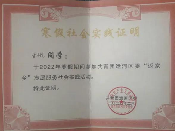 作为一名中共预备党员,1902班的学习委员于小凡同学自本次寒假以来,在配合社区防疫要求下积极参加社区志愿服务,主要包括核实社区居民疫苗接种情况、社区底商健康码的制作和分发、下社区入户调查等工作。参与本次志愿活动后,于小凡同学也收获了一些感悟,她说:“作为党员在关键时刻要亮明身份,在力所能及的范围内为人民服务地做真事、做实事。由于家乡和天津相邻甚近,来往通勤的人员密集,假期期间天津疫情使得社区防疫工作要求更高、工作量也偏多。即便如此,在服务中遇到居民或商户不理解的情况,我也会耐心地解释、安抚情绪以便于工作的开展。在本次的志愿服务中,我对“全心全意为人民服务”宗旨的理解更加深刻,也明白了广大党员同志所坚守的初心和使命,坚定地相信光明就在不远的将来。”