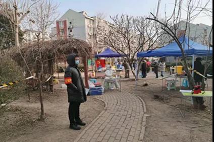 2003班康如雨,参加了天津市河东区大直沽街道宫前园社区的核酸筛查志愿服务活动。