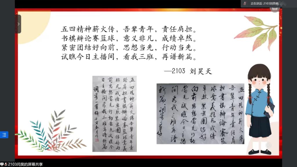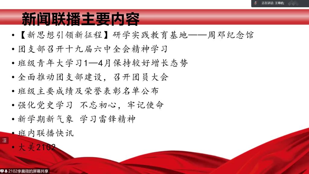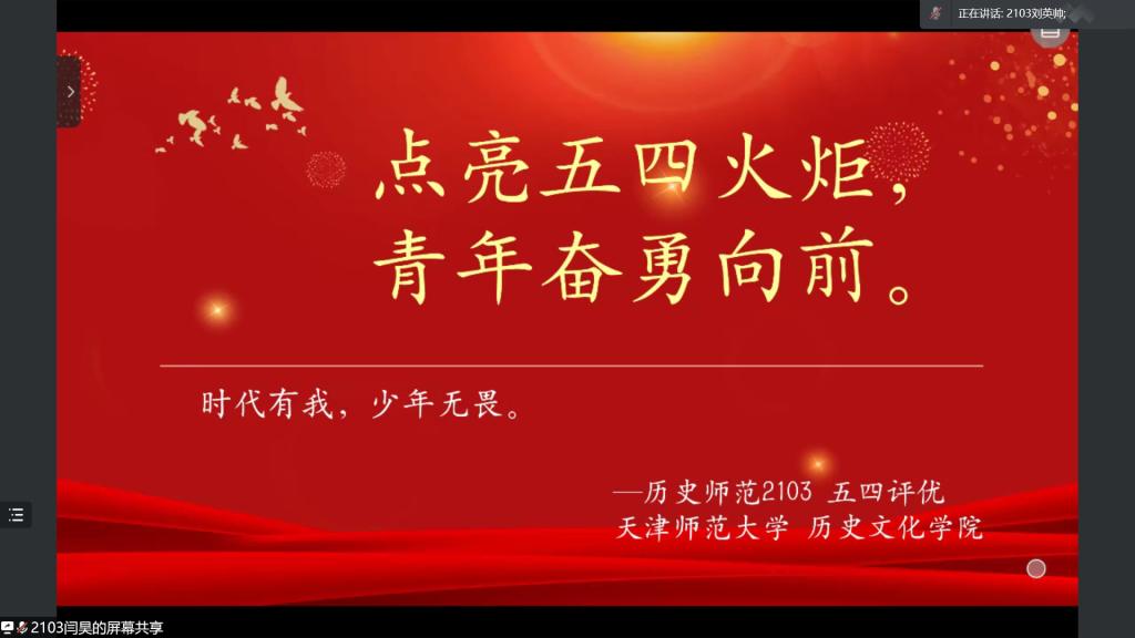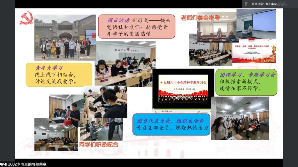 今年正值建团一百周年,一百年来中国共产党带领一代代青年人披荆斩棘,用青春和热血书写了彪炳史册的壮丽篇章。遥想建团之艰辛,千回百转:回顾抗战之惨烈,刻骨铭心;追忆改革之骁勇,热血沸腾;展望经济之蓬勃,意气风发。在此之际,为表彰先进,树立典型,激励更多历史青年砥砺前行,600全讯cc白菜于2022年4月14日晚举办2021-2022学年度“五四评优”大会,集中对先进团支部进行了表彰。公司党委副书记徐显达老师,党政办公室主任晏莉老师,团委书记白卓让老师,团委副书记王楠老师、田宇老师,学工办辅导员王勃然老师、李妍老师,班主任鲁鑫老师、胡哲宇老师、可媛老师、郭皓老师一同出席本次活动。