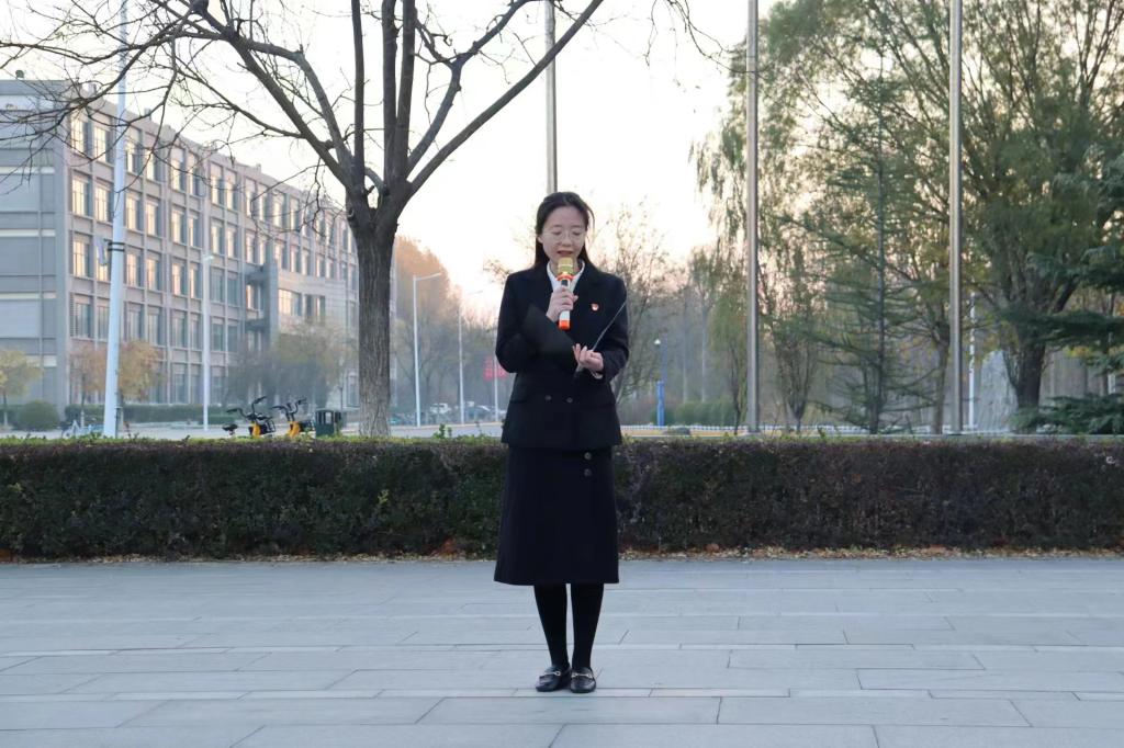 院团委书记白卓让老师在国旗下发表讲话,白老师首先对2022级新同学表示热烈欢迎,并对同学们提出殷切期望,希望同学们能够树立崇高的理想信念,磨练坚强的意志品格,练就过硬的本领才干,珍惜韶华,发愤图强,在追逐梦想的的新征程上踔厉奋发、勇毅前行。