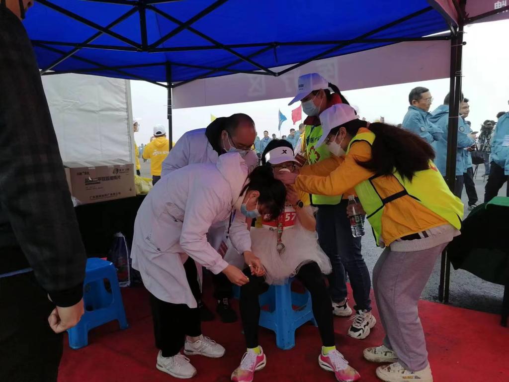 2203班的董香凤同学是学校红十字会志愿服务部的一员,她在今年寒假中报名参加了云浮市大金山半程马拉松比赛的志愿活动,经过培训和自身不懈的努力下,成为了一名赛事医疗保障志愿者。在比赛过程中,董香凤同学与组长在终点站及时救助出现身体不舍情况的参赛者,并在运动员们悉数到达终点时主动为其派发食物,为远动员们的身体健康和能量补充做出了保障。