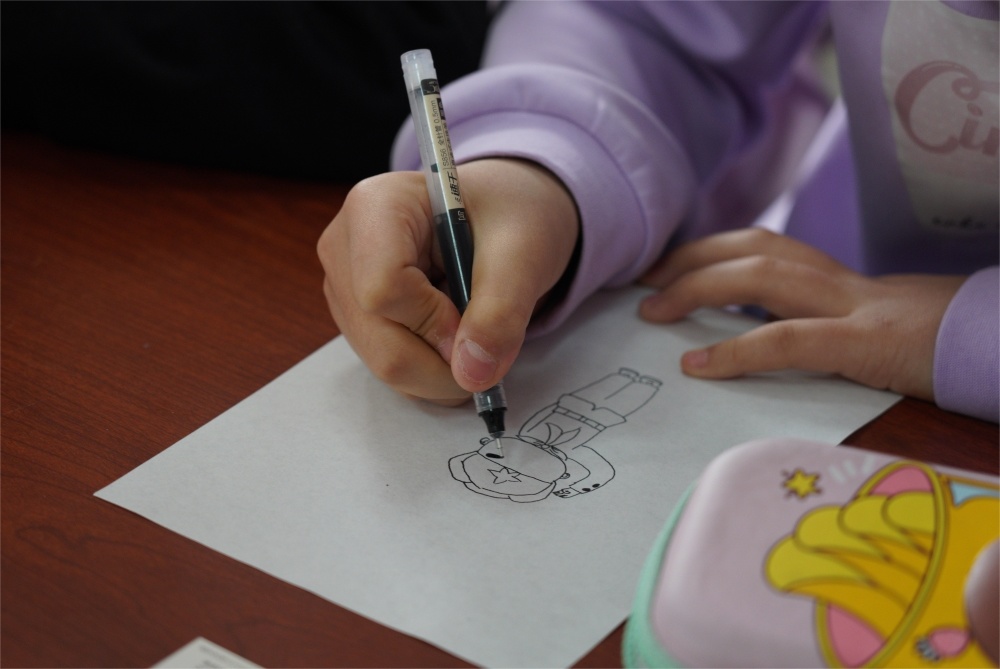 随后,成员们指导小朋友们画出自己心中的雷锋叔叔,每个小朋友都以稚嫩的画笔大方地向我们展示了他们眼中的雷锋叔叔。