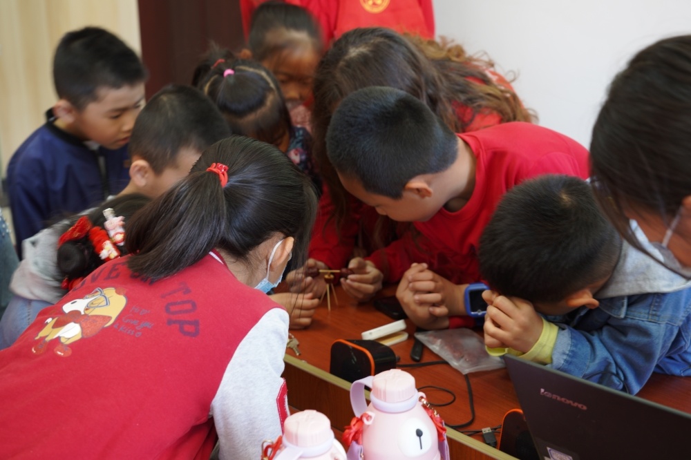 在“古人游戏玩一玩”环节,成员们带领小朋友们体验宋朝儿童游戏——推枣磨,小朋友们积极尝试,现场气氛热烈。
