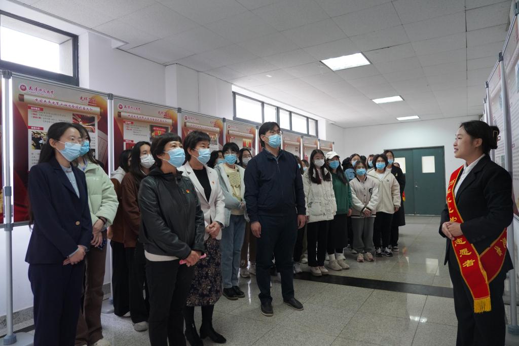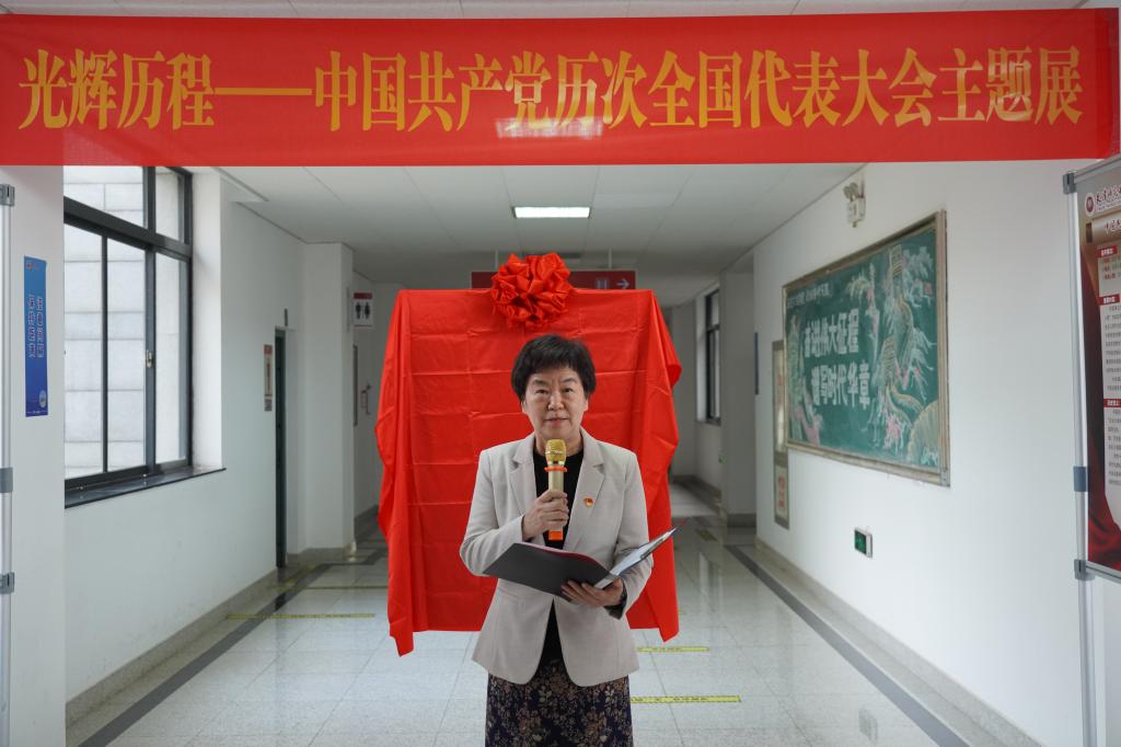 为庆祝中国共产党第二十次全国代表大会成功召开,弘扬伟大建党精神,激励当代青年爱党奋斗、砥砺前行,11月24日下午,由公司党委、红色文化育人基地主办,公司党委求是学社员工党支部承办的“光辉历程——中国共产党历次全国代表大会主题展”揭幕仪式在兴文楼C区二楼展览场地成功举办。公司党委工作部部长刘红英、校团委副书记徐世渊、公司党委书记刘殿芬以及公司支部书记、教师、员工代表出席本次活动。