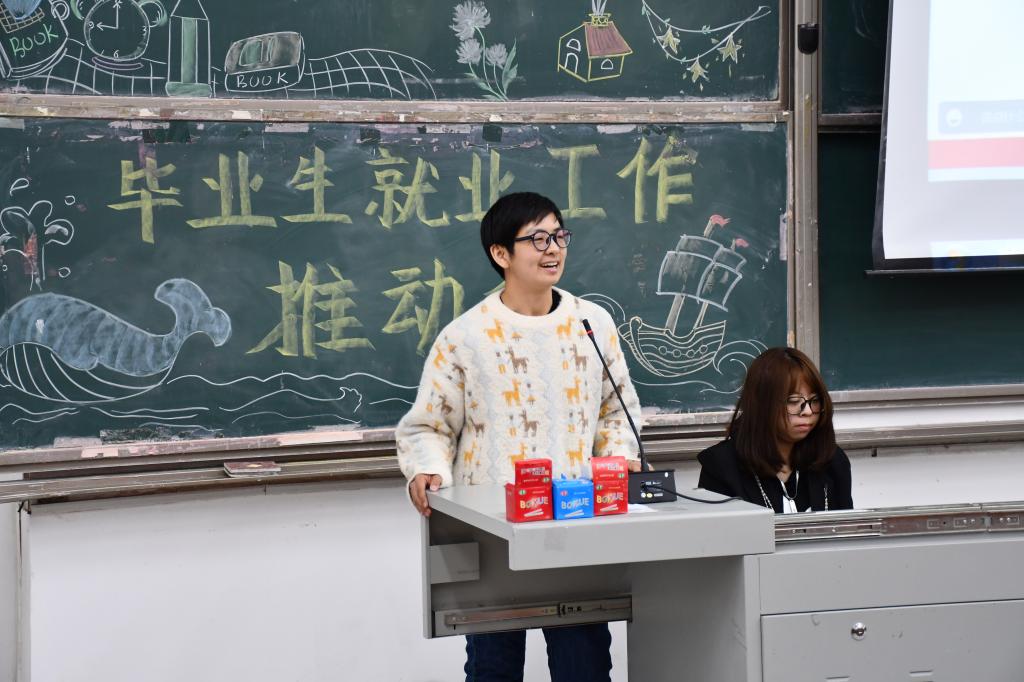 随后,世界史系教师、毕业班班主任刘宇方老师为毕业生们做就业指导交流。她希望毕业生们积极调整心态,减少焦虑,做好自我目标规划,思考自己的人生方向及职业价值,寻找自己的适合的岗位;同时鼓励毕业生们要相信自己的人生掌握在自己手里,可以创造自己的明天,相信奋斗终有所得,前途无限光明。